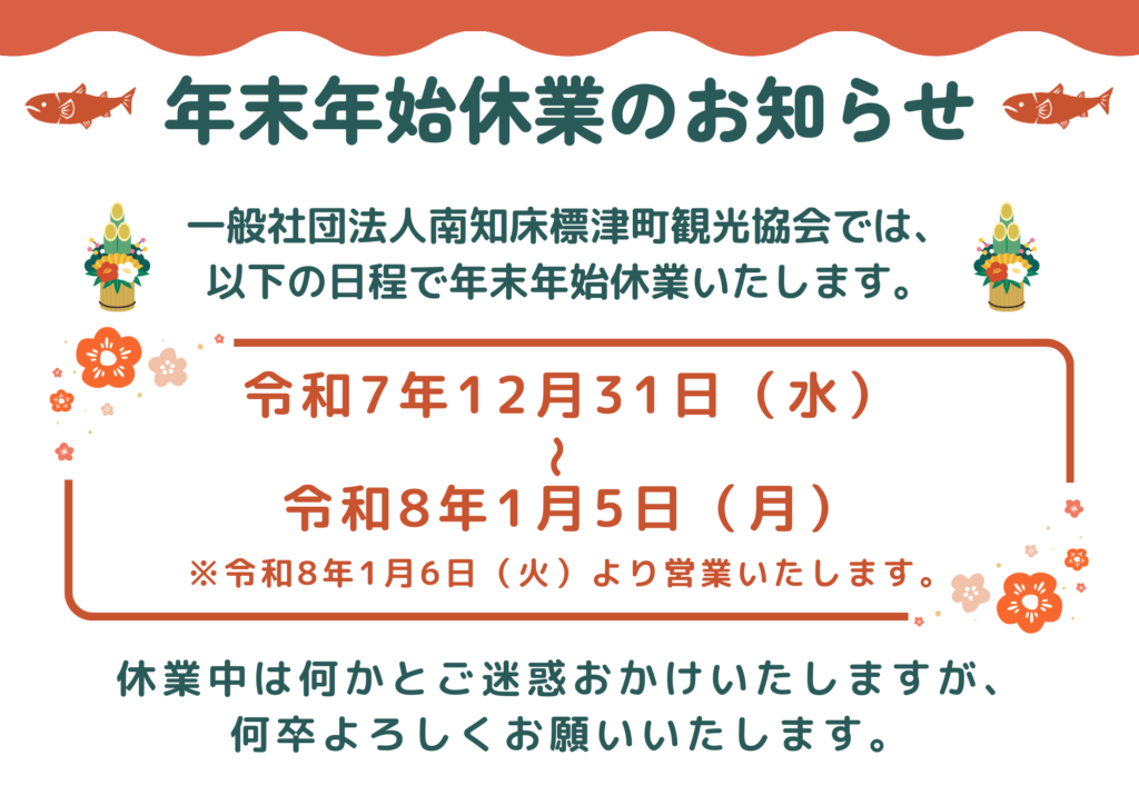 令和7年度 一般社団法人南知床標津町観光協会 年末年始休業のお知らせ